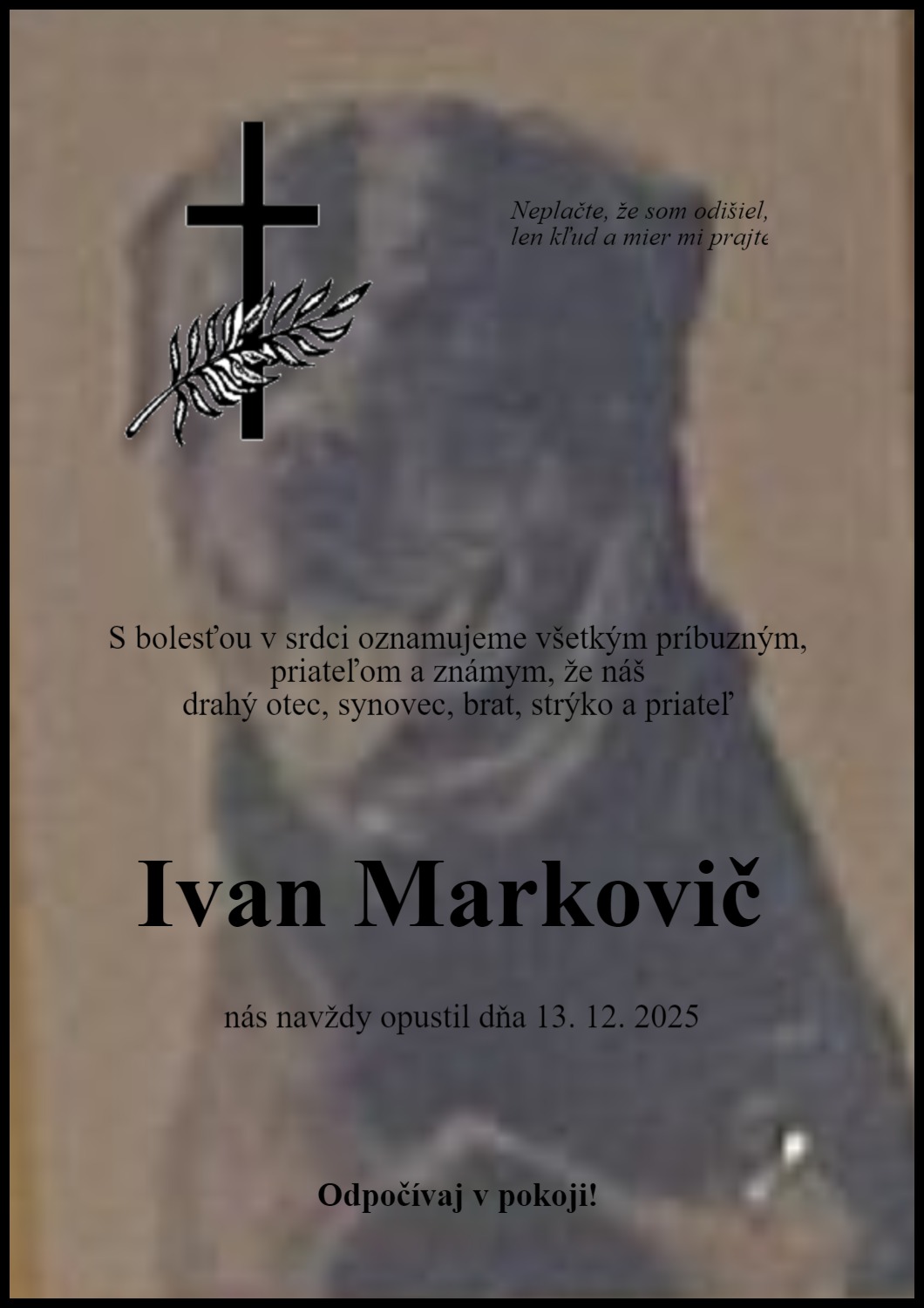 S veľkou ľútosťou oznamujeme, že dňa 13.12.2025 nás navždy opustil dobrý človek, kynológ a priateľ IVAN MARKOVIČ